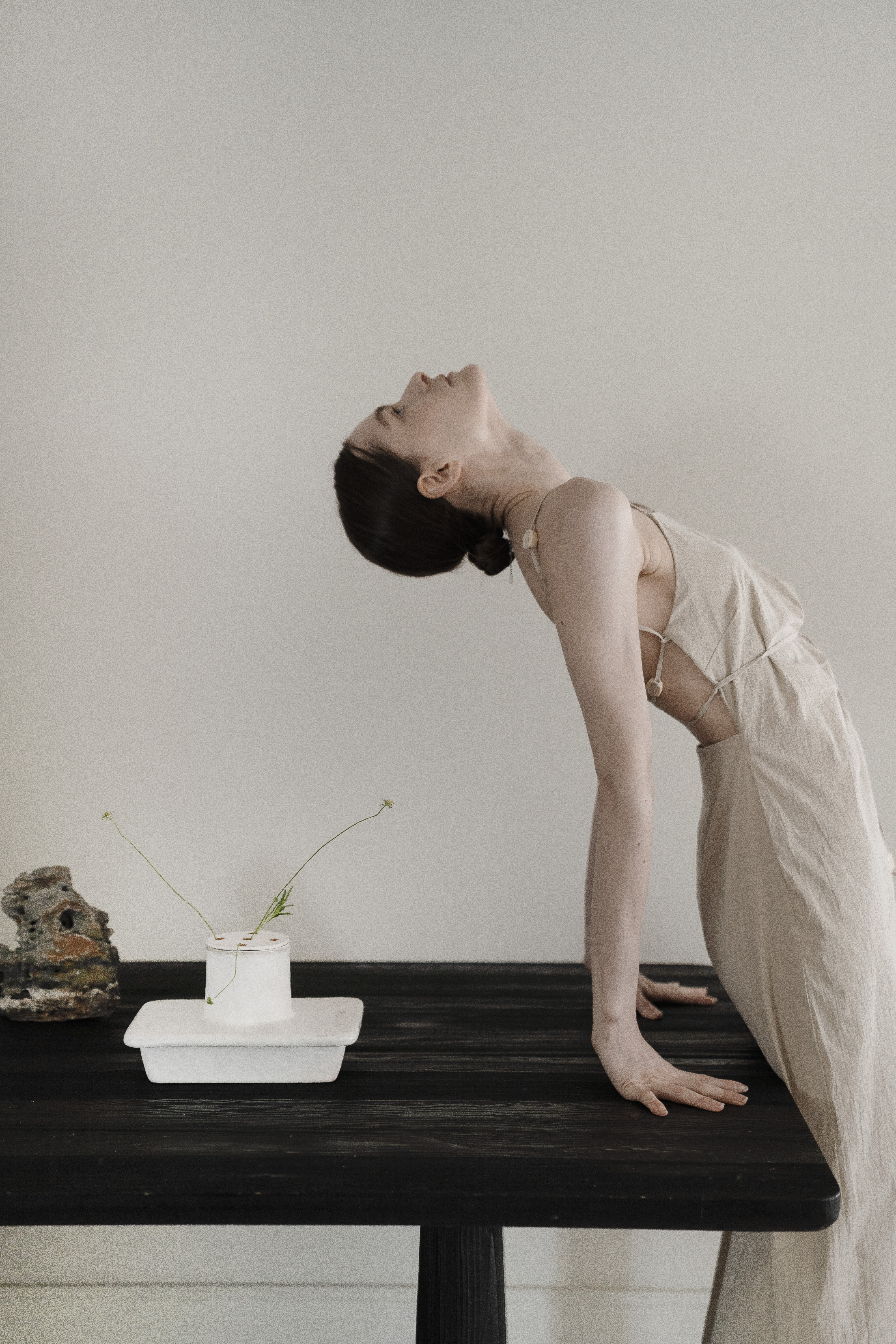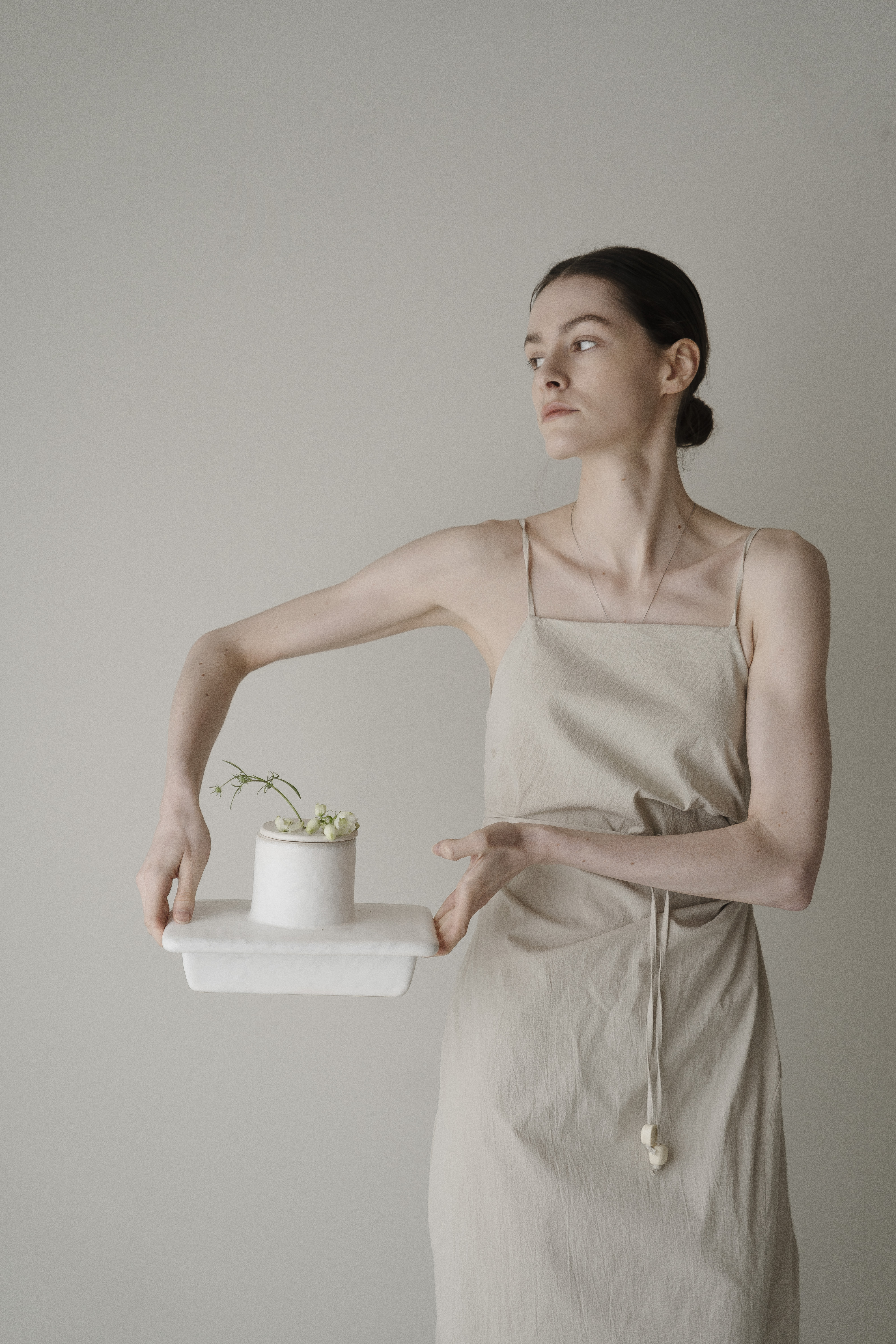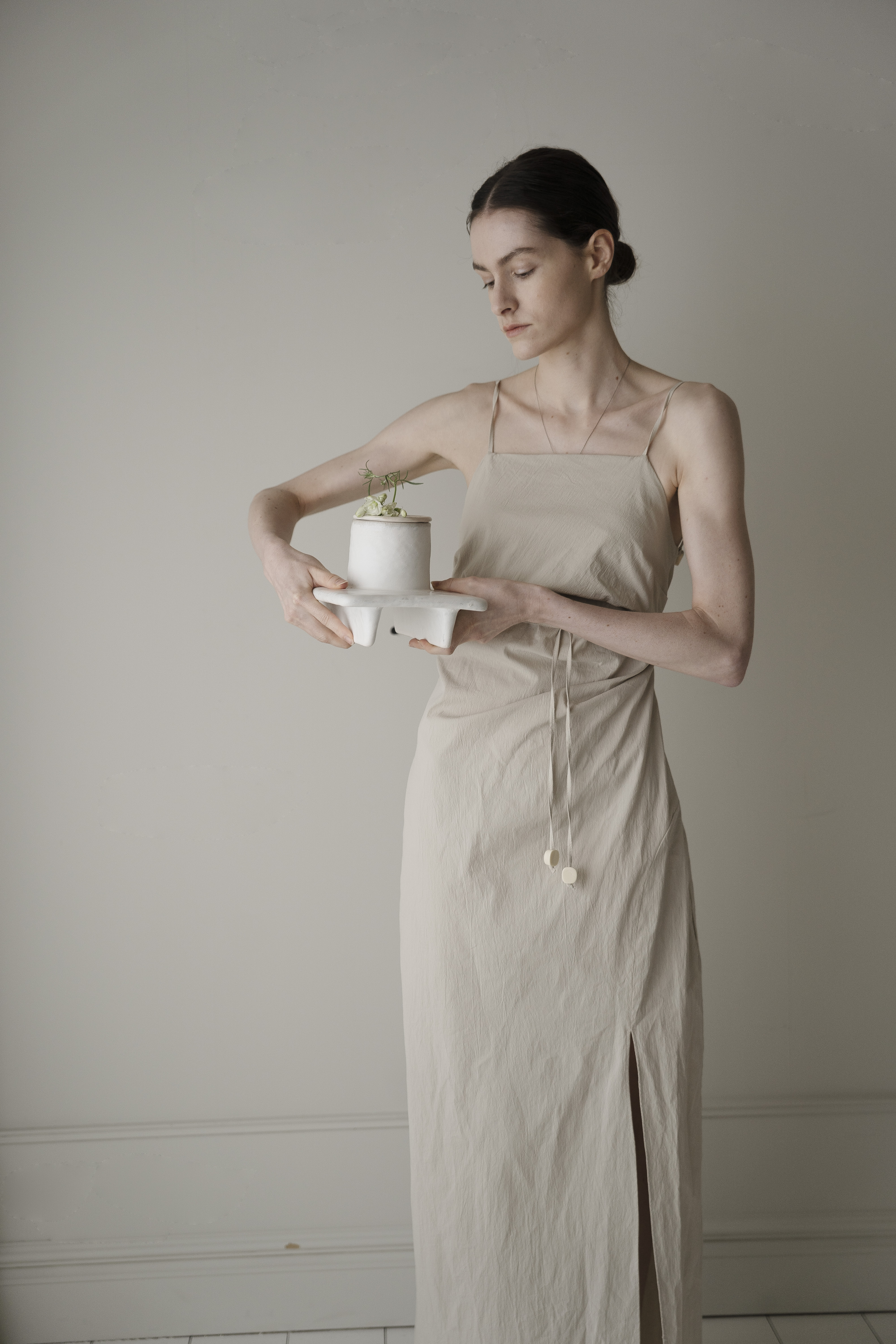 사이를 비집고 드러난 아름다운 풀의 꽃. 자연스런 곡선의 점들은 아름다운 흔적과도 같은, 고온의 열에 더욱 단단해진 유약의 표현은 지나간 것들이 어떠한들, 반복된 행위는 생명이 다한 것을 게워 만져지고 손으로 정화되며 붓질 표면의 깨끗하게 정수됩니다. 여러번의 붓질의 반복된 행위와 흙의 본연의 생명을 넣어 반복적으로 게워 만져진 도자기는 자연스럽게 다시금 새겨진 모든 것들이 자연을 향한 소망입니다. 작은 한단의 풀잎, 꽃대조차도 소중히 바라보는 우리의 자세를 담아냅니다. 깊은 우물은, 단물과도 같은. 재생의 공간의 의미로 지속되기도합니다. 삶에 단아한 행복을 주는 작은 천국과도 같기를 바래는 소망으로.