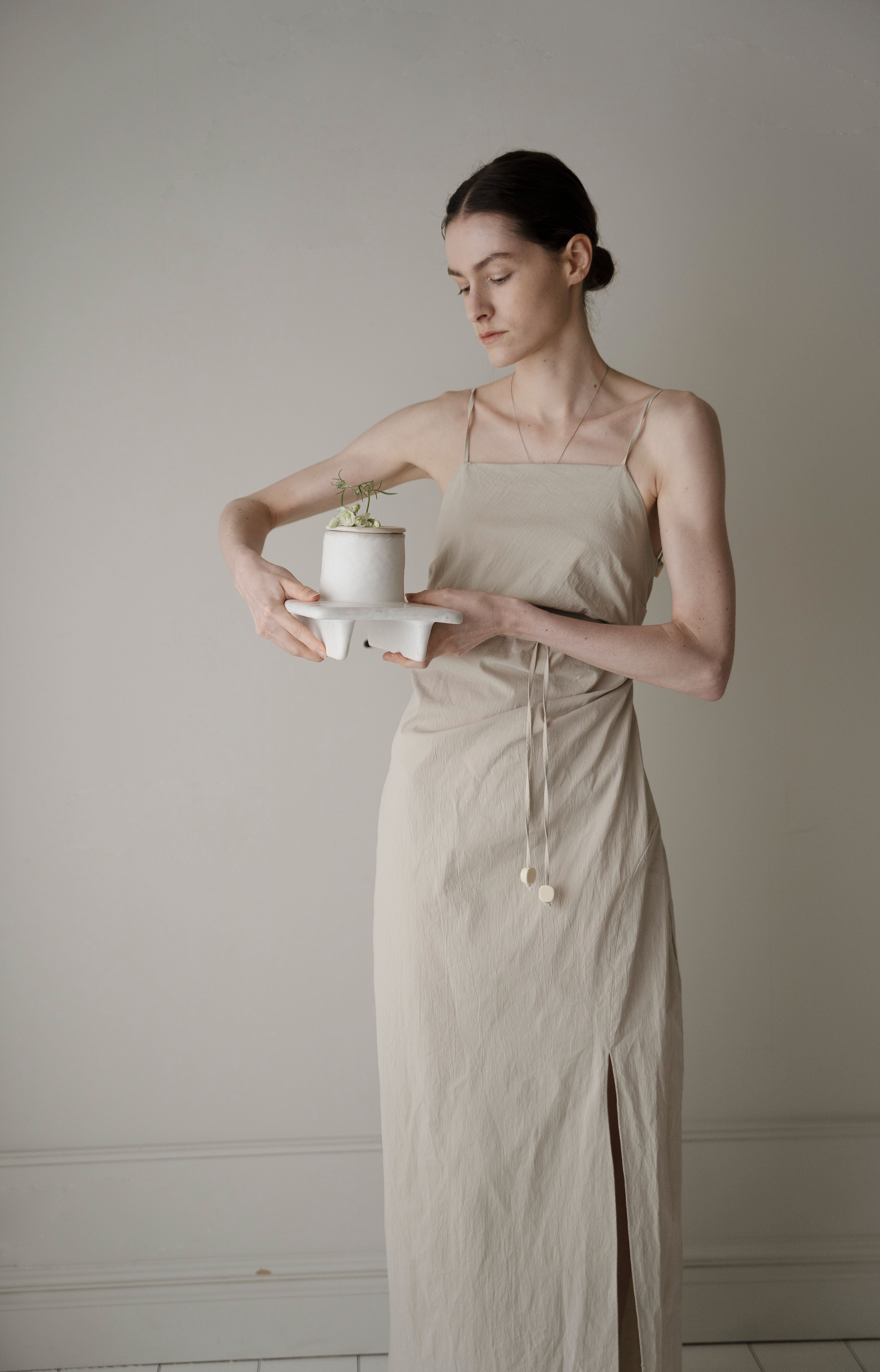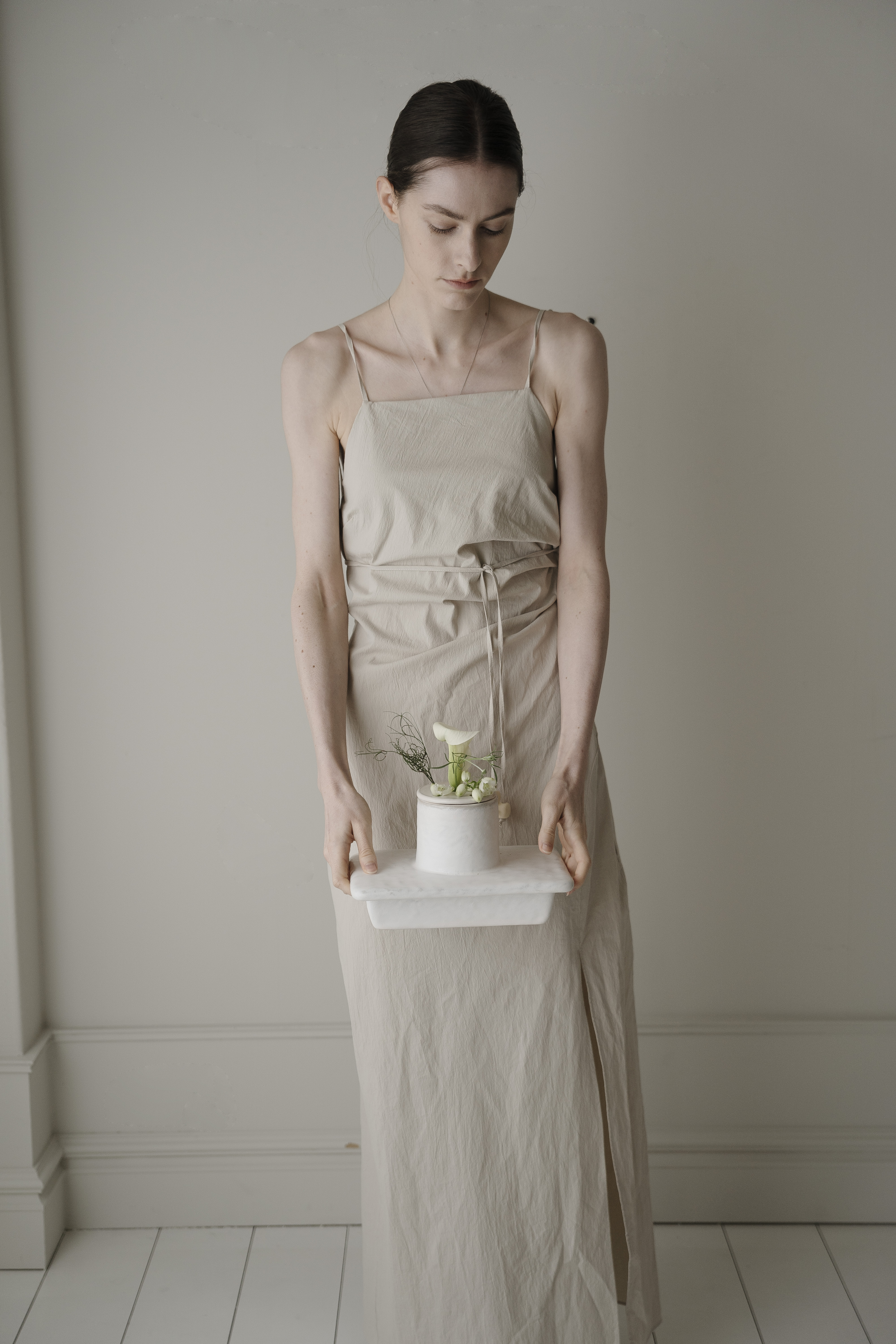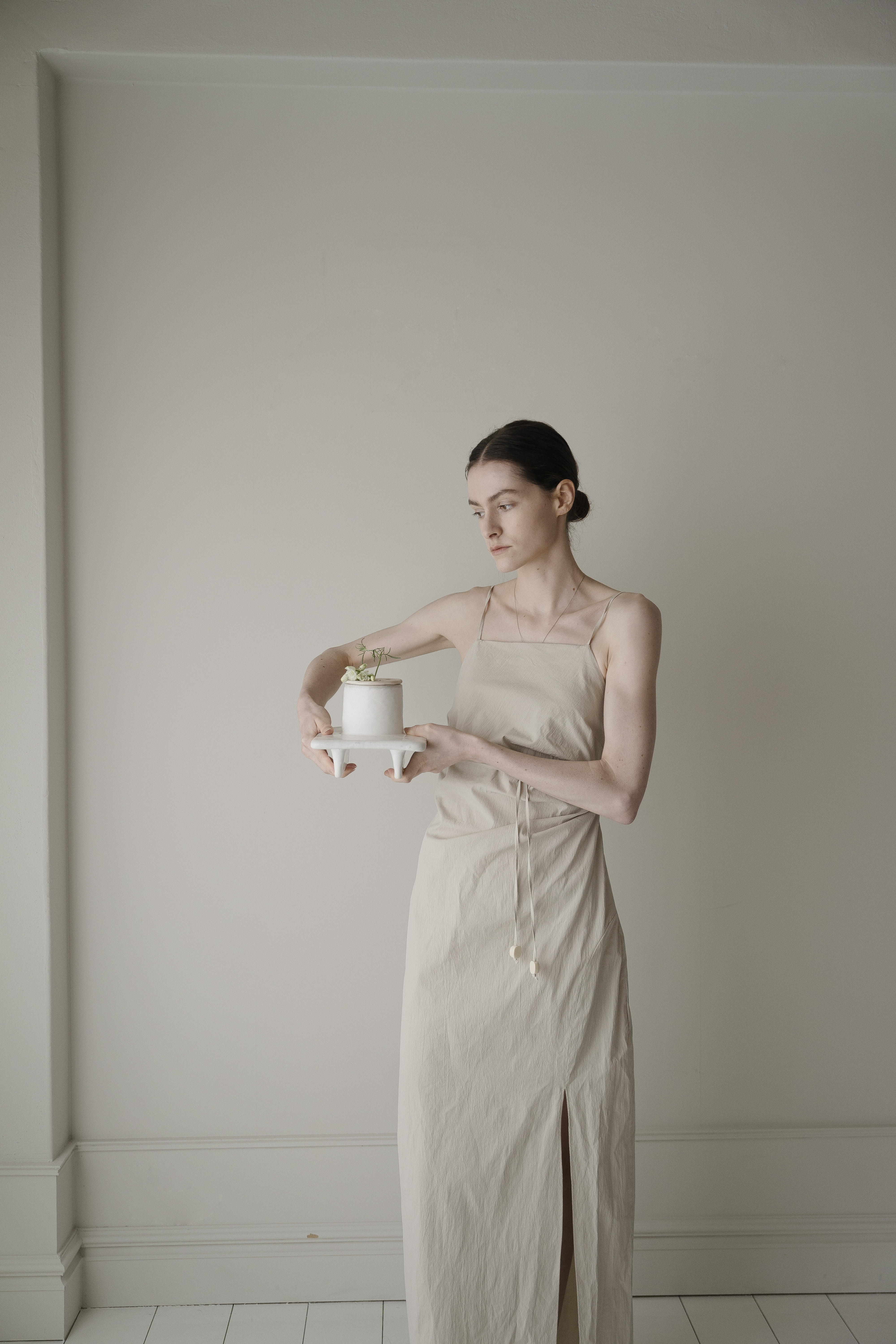 사이를 비집고 드러난 아름다운 풀의 꽃. 자연스런 곡선의 점들은 아름다운 흔적과도 같은, 고온의 열에 더욱 단단해진 유약의 표현은 지나간 것들이 어떠한들, 반복된 행위는 생명이 다한 것을 게워 만져지고 손으로 정화되며 붓질 표면의 깨끗하게 정수됩니다. 여러번의 붓질의 반복된 행위와 흙의 본연의 생명을 넣어 반복적으로 게워 만져진 도자기는 자연스럽게 다시금 새겨진 모든 것들이 자연을 향한 소망입니다. 작은 한단의 풀잎, 꽃대조차도 소중히 바라보는 우리의 자세를 담아냅니다. 깊은 우물은, 단물과도 같은. 재생의 공간의 의미로 지속되기도합니다. 삶에 단아한 행복을 주는 작은 천국과도 같기를 바래는 소망으로.